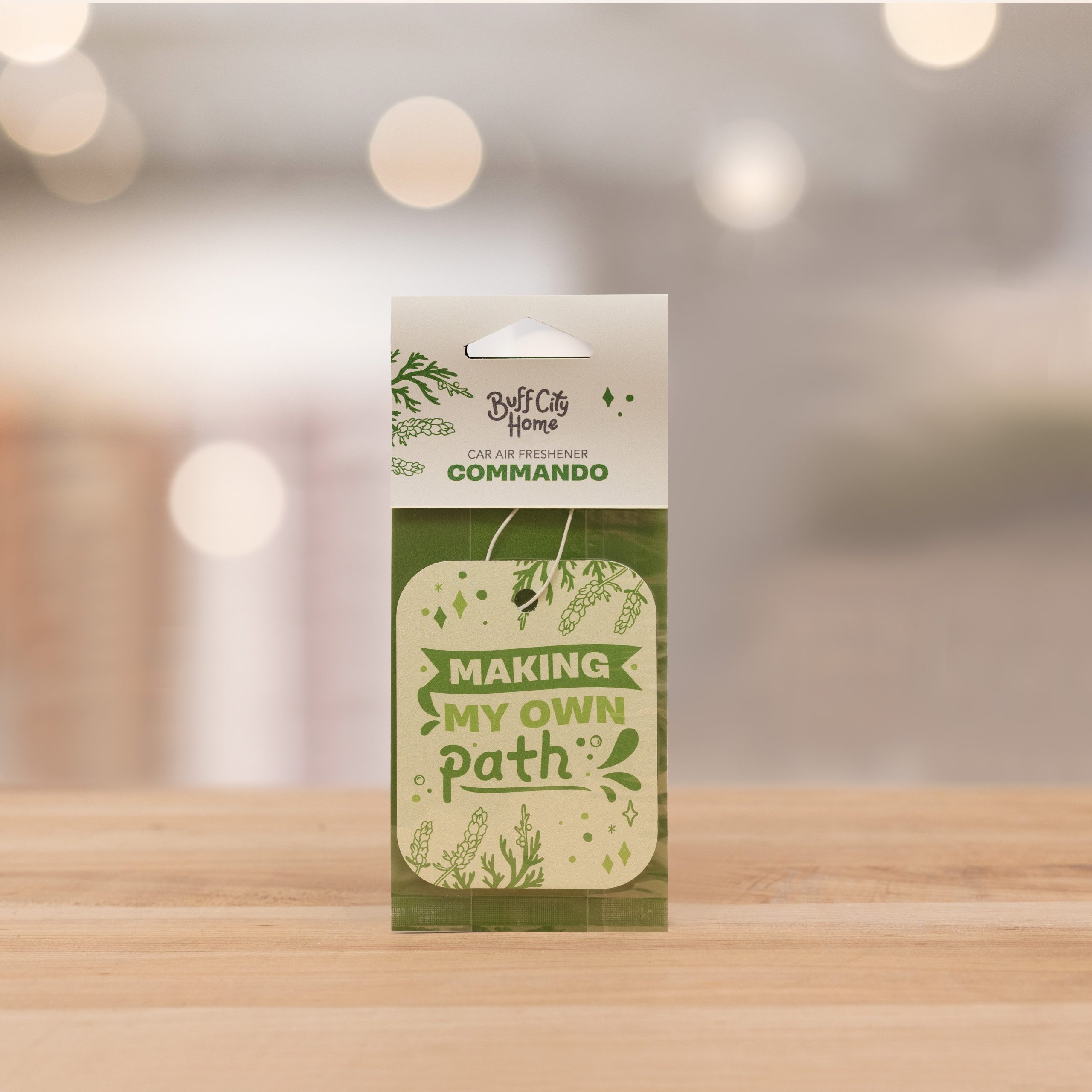 Commando Car Air Freshener Perfect for adventure-filled road trips. Notes of vanilla, lavender, & cedar will follow you to distant mountains, cedarwood forests, & wherever life takes you.